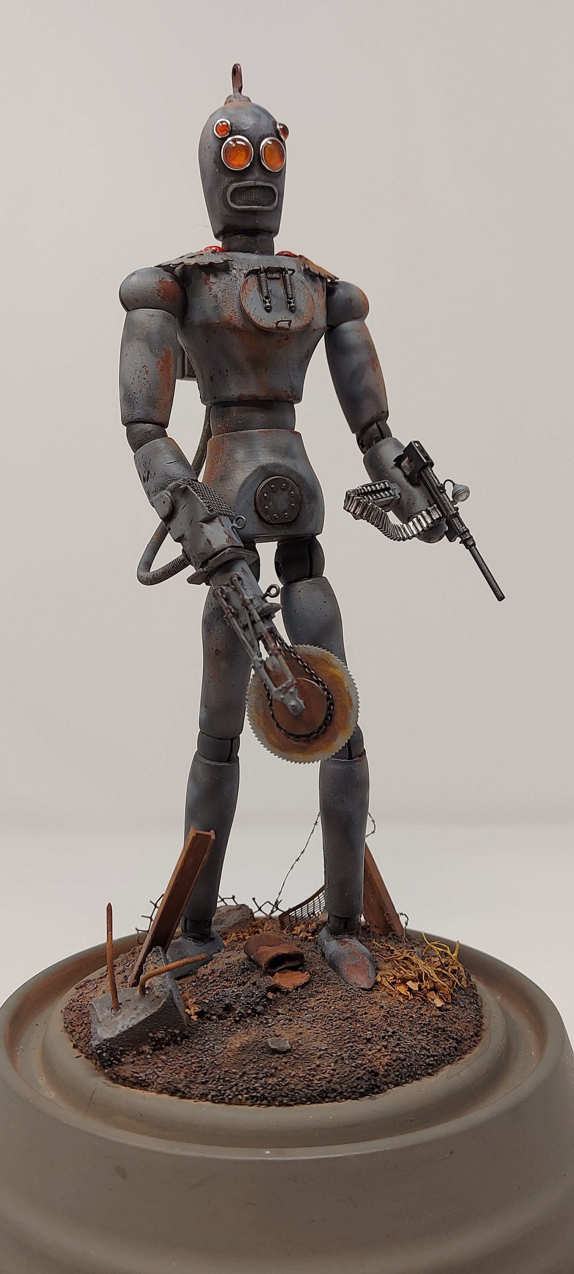 The 2 android type robots where made with an AI take over scenario in mind. The "Forester", because trees and oxygen will no longer be needed. The "Hunter Killer" because, other than a small slave population, humans are not required. The other little guys was just for fun.